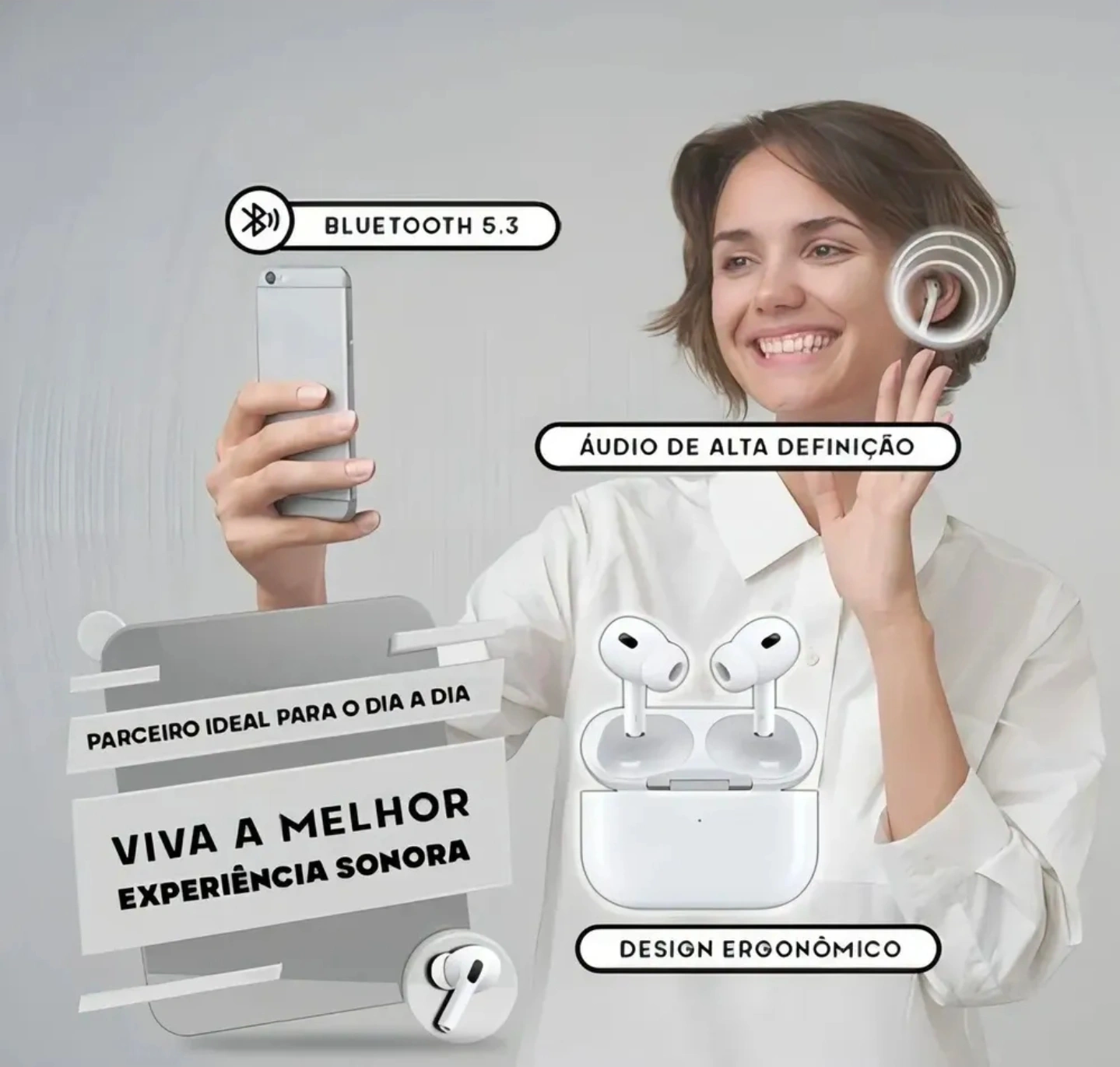 Design leve e ergonômico: apenas 5g por fone.