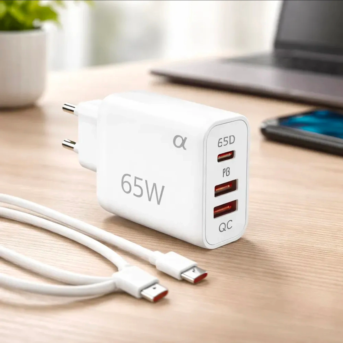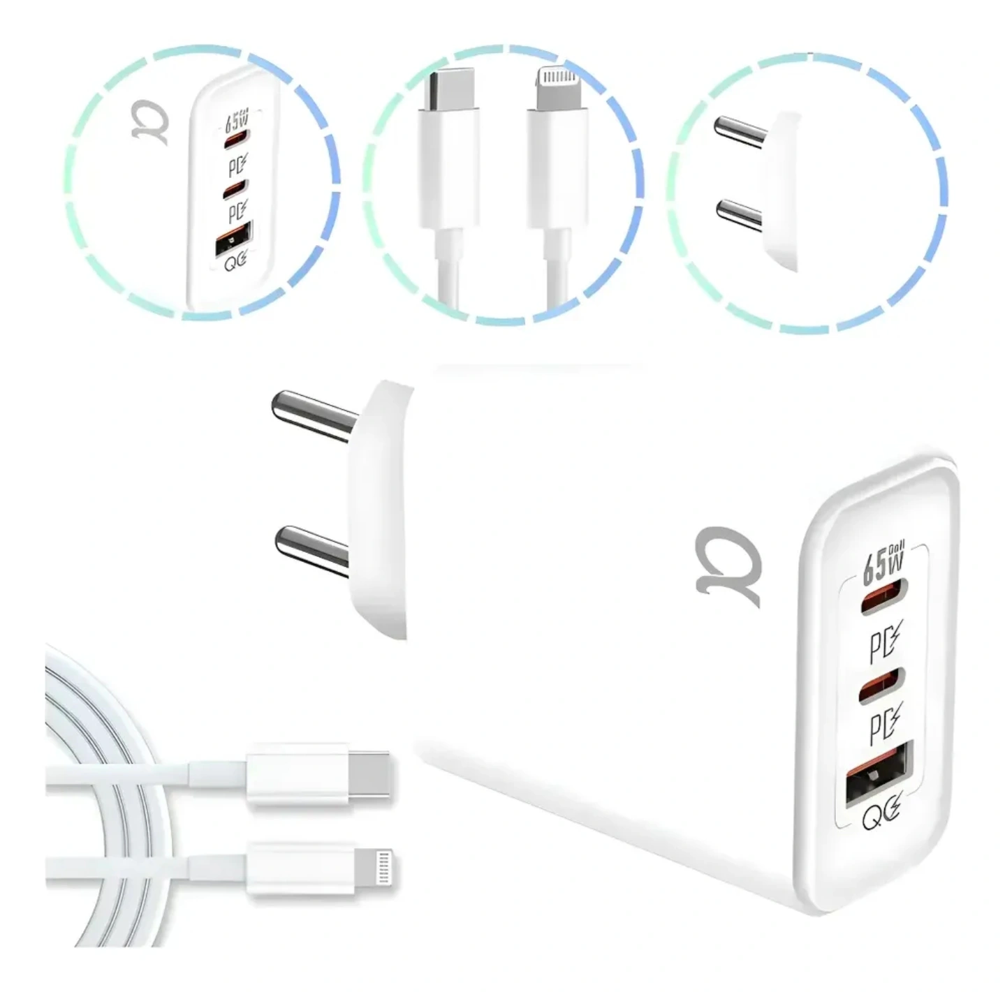 Carregador Gan Ultra Rápido 65w Usb-C/ C-lightning Original